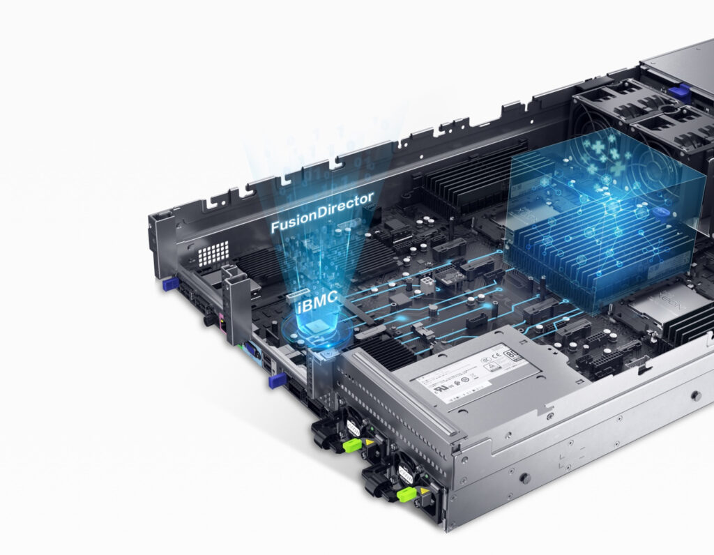 • The iBMC supports standard interfaces such as Redfish, SNMP, and IPMI 2.0, provides a remote management interface based on HTML5/VNC KVM, and supports out-of-band management functions such as monitoring, diagnosis, configuration, Agentless, and remote control for simplified management