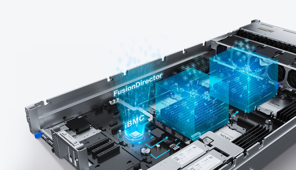 O chip iBMC integra uma porta de rede GE de gerenciamento dedicada, fornecendo recursos de gerenciamento abrangentes, como diagnóstico de falhas, O&M automático e reforço da segurança de hardware.